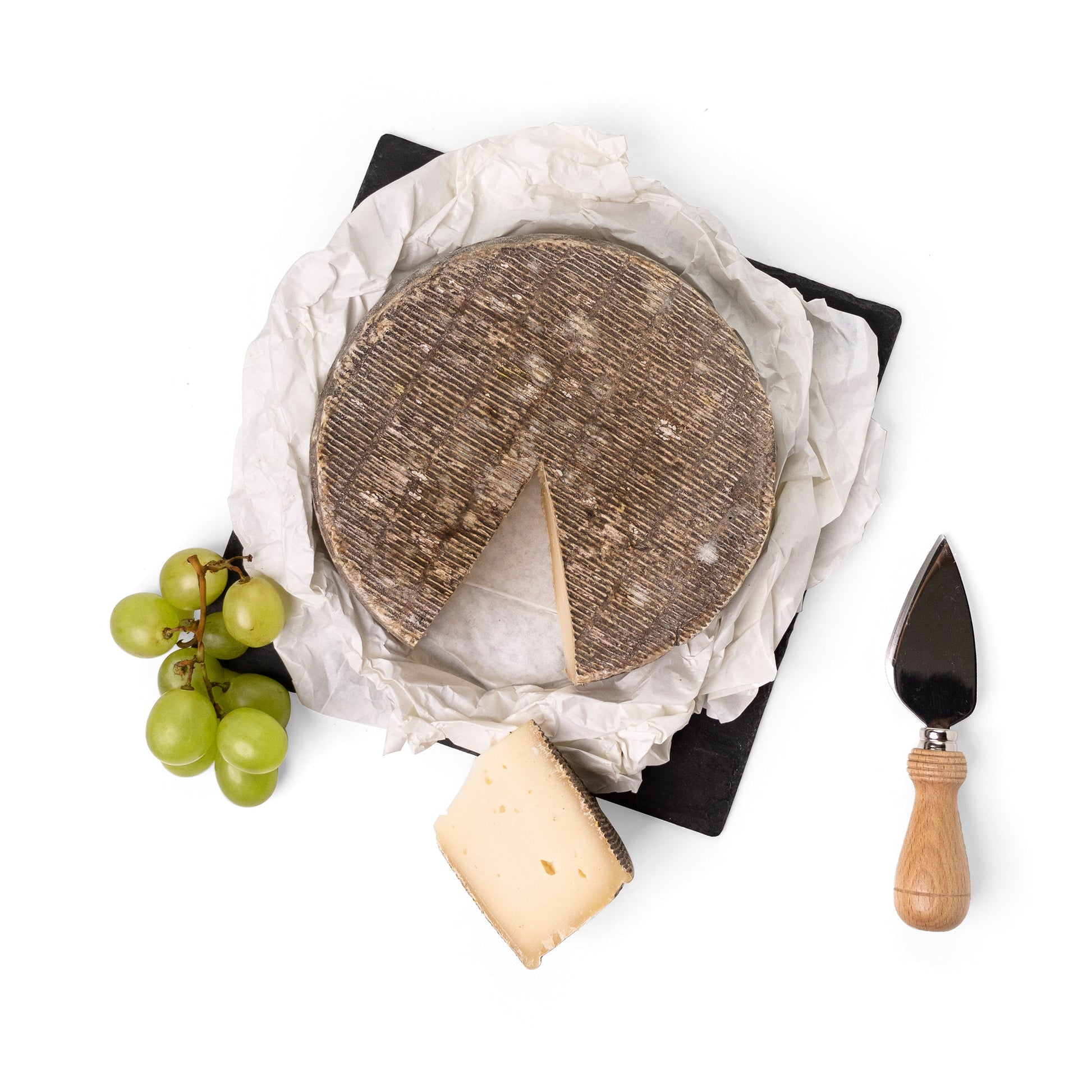 La crosta è liscia, la pasta è elastica di colore paglierino con presenza di occhiature, il sapore è caratteristico con retrogusto di fieno e burro.