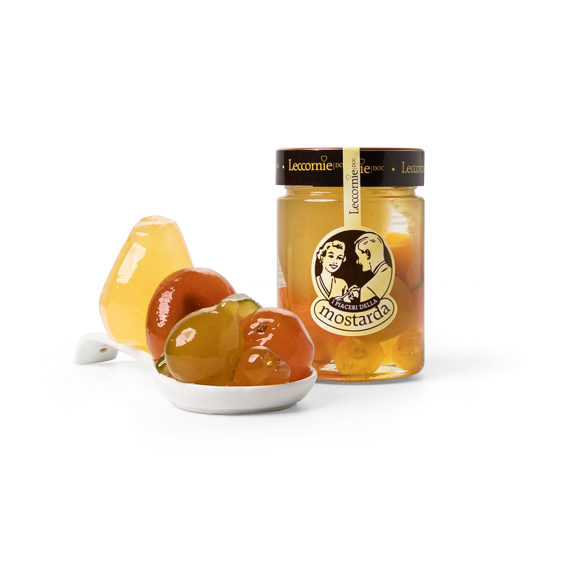 Frutti interi canditi di origine italiana selezionata a mano, olio essenziale di senape, sapienza e tradizione: ecco cosa rende eccellente e vellutata la mostarda cremonese artigianale di Leccornie Doc, risultato di una combinazione perfetta tra frutta e sciroppo, che la rende intensa e piena, ricca di corpo e calore.