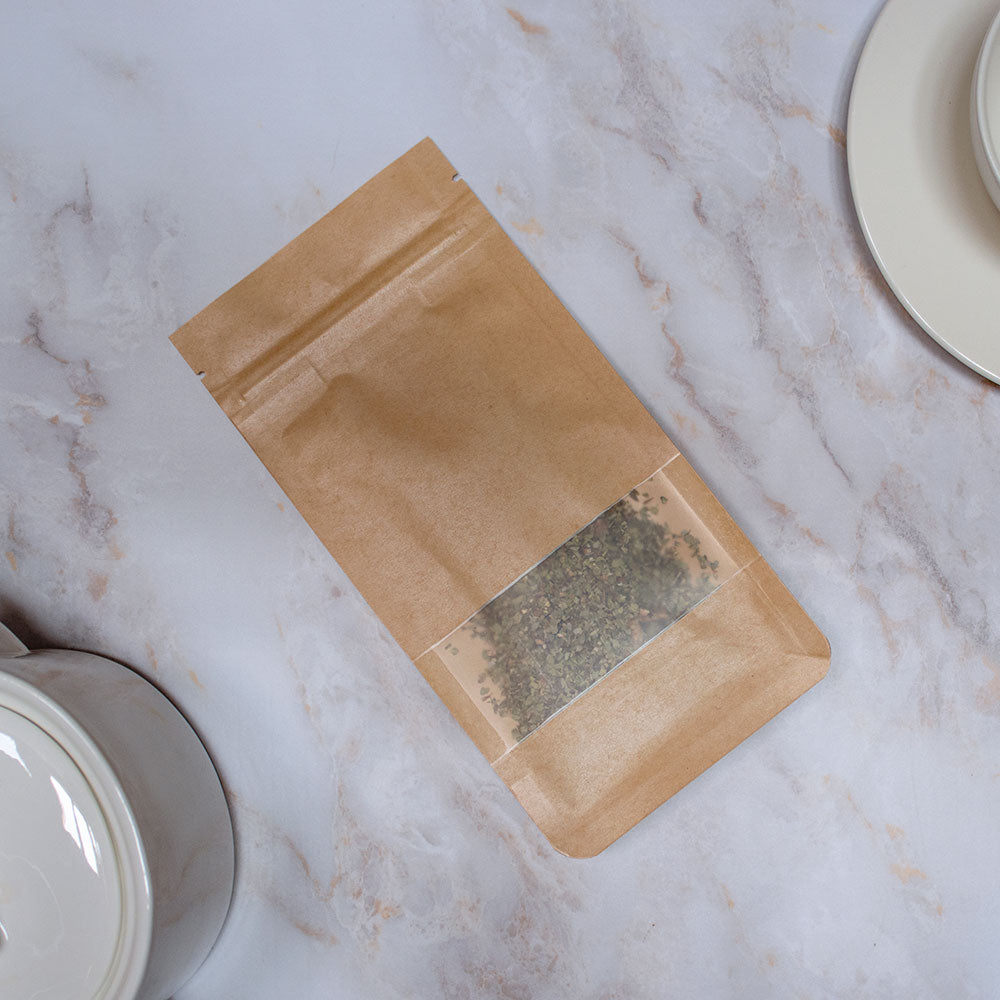 - Ingredienti: Maggiorana in foglie, mela disidratata, mirtilli rossi secchi, peperoncino.
